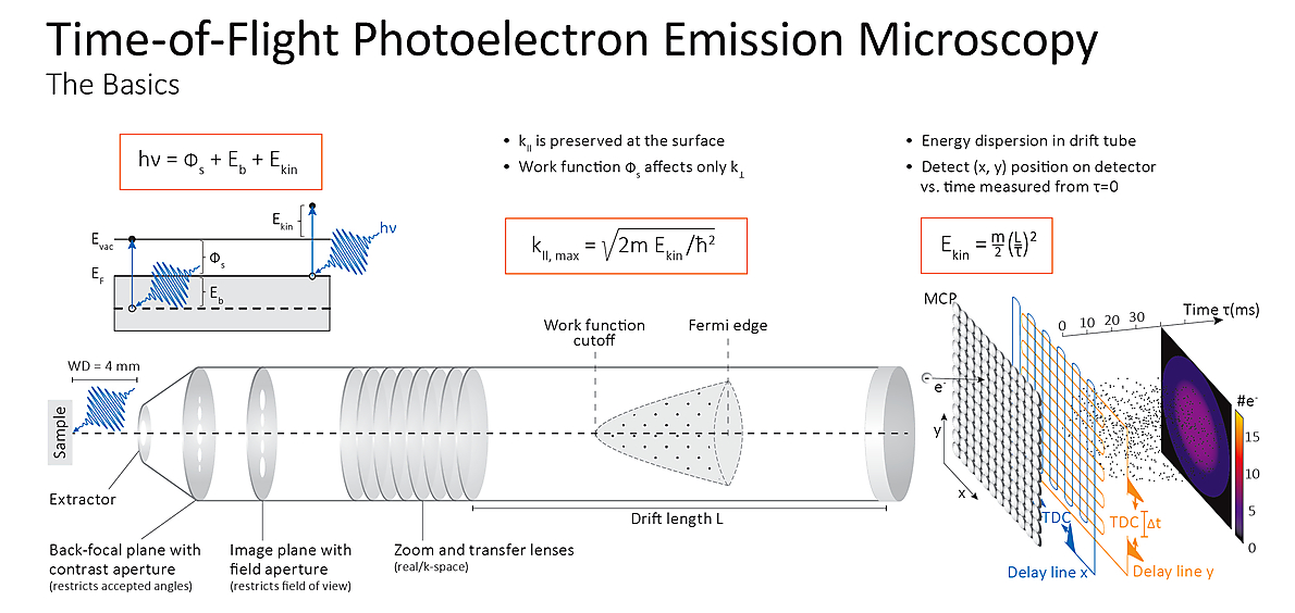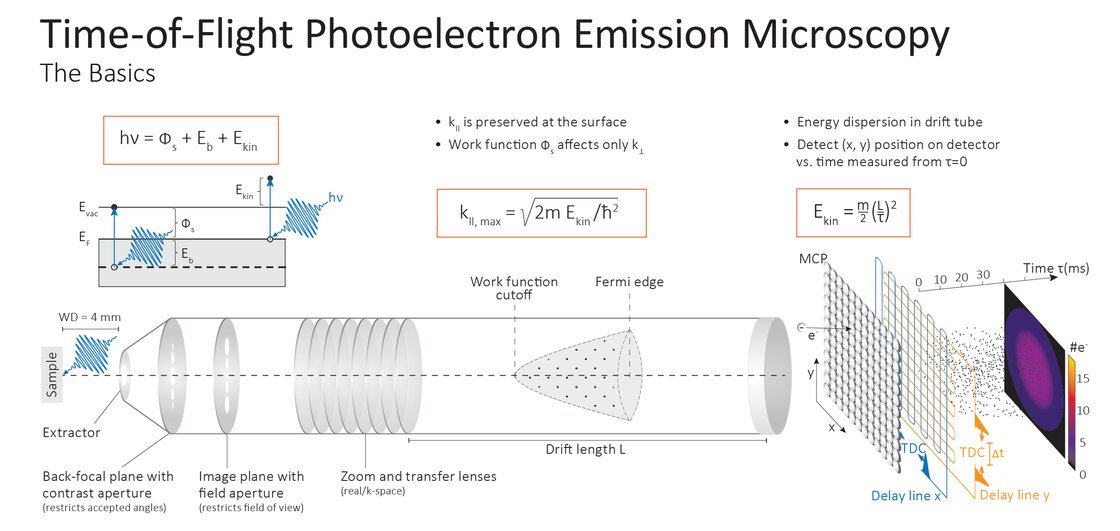 The global electronic band structure and its dynamics are of great interest in quantum materials. Scienta Omicron’s Time-of-Flight Momentum and Imaging Microscope (ToF MIM) is an efficient tool to characterise global electronic band structure and microstructure at once. It is ideally suited to study ultrafast electron dynamics in pump-probe experiments using ultrashort laser pulses.